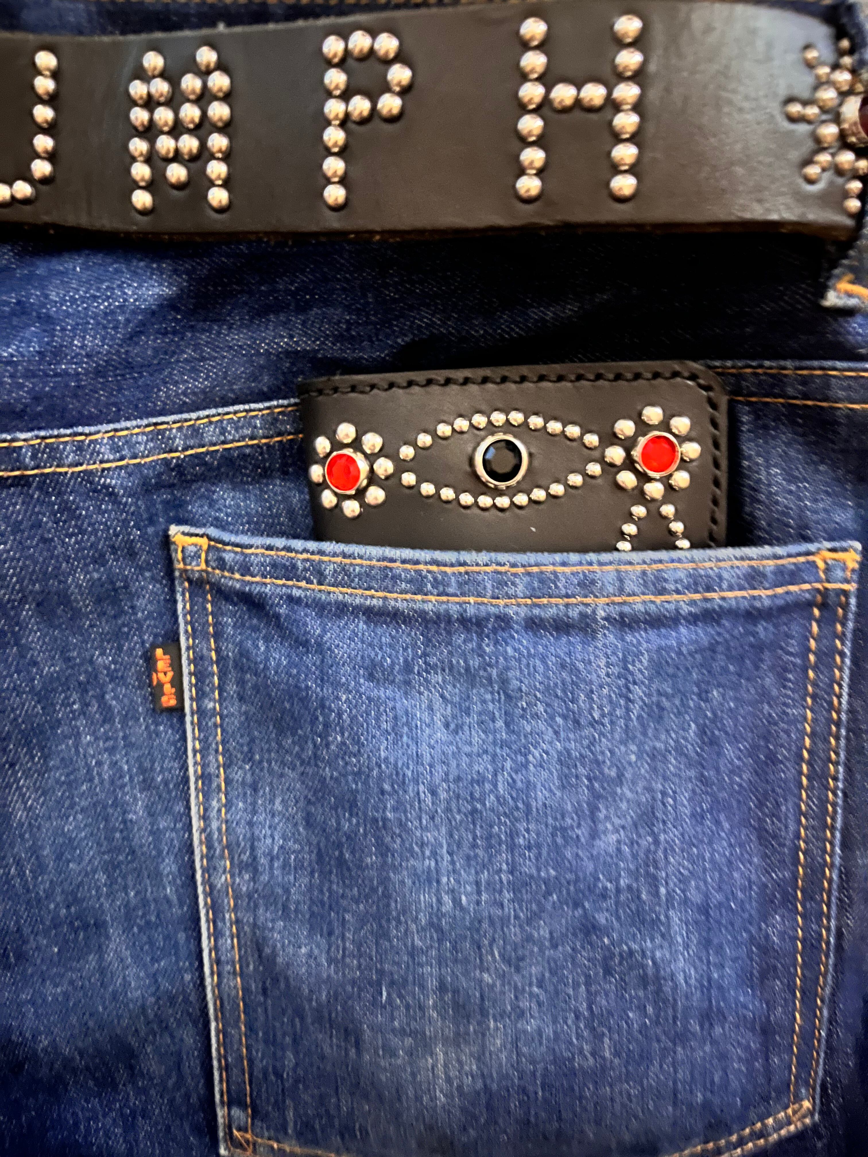 ※ハトメと丸カンをつけてウォレットチェーンを付けれるように加工致します